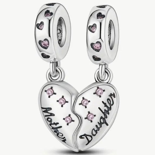 'Mi Confidente' Mother & Daughter Bling heart Charm): “Dos mitades de un solo corazón, madre e hija. This charm representa esa conexión única que nunca se rompe, aunque estén separadas.”