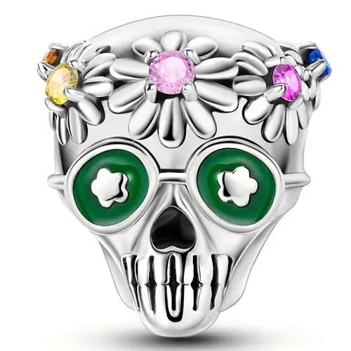 'La Fria' Flower Skull Charm reflects that flores y calaveras se mezclan en this charm, un tributo a los seres queridos que nos cuidan desde el más allá.”