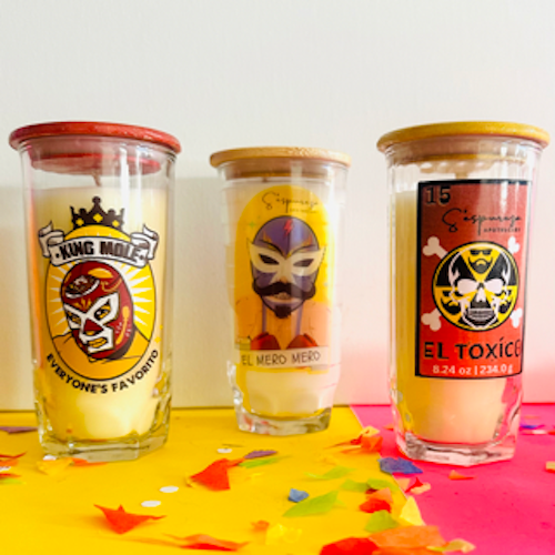 Opt1: El Mero Mero - Scent: A mix of a variety of citrus fruits & cedar-wood. Lucha Libre isn’t just a sport, it’s an epic saga that has been thrilling fans in the Latino Communities since the 1930’s. From the iconic silver-masked El Santo to the high-flying Rey Misterio. Estos luchadores no solo son los verdaderos héroes de la lucha, they are THE G.O.A.T’S of the ring.