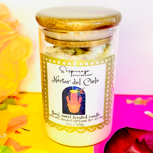 S'espureza Mexican Inspired 🌵 Néctar del Cielo Scented Candle – Straight from the agave plant to your senses, this candle is pure heaven in a jar! Inspired by the legendary agave, the sacred plant that gives us tequila, mezcal, and all the good vibes, this scent is like a sweet blessing from the gods.