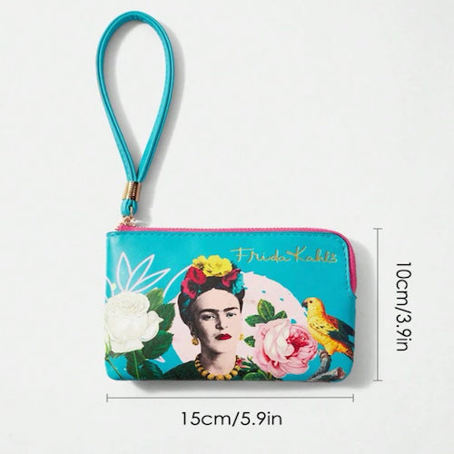 Frida pattered designed coin purse, wrist bag. Beautifully patterned wrist wallet, fits cards, cash. Easy to carry and not loose stuff.
