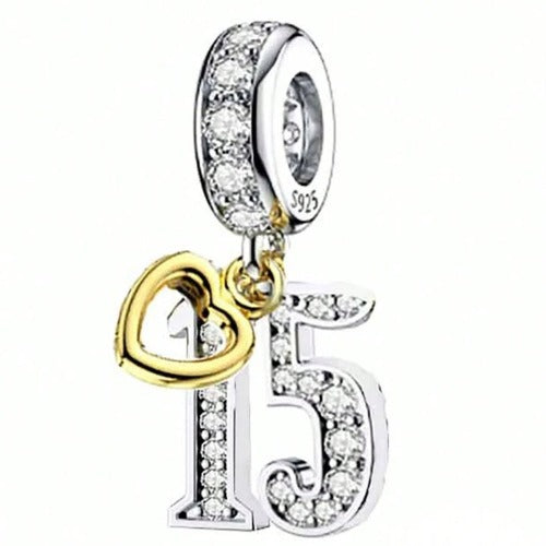 'Quince Primaveras' Charm': El momento más especial en la vida de una chica. This charm captura la magia y la elegancia de la Quinceañera, una tradición que sigue viva.”
