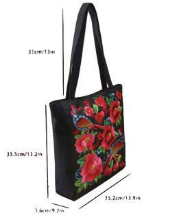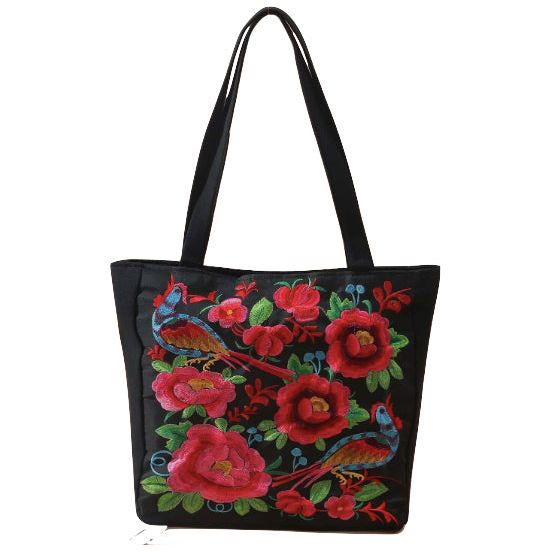Product Details: Color: Multicolor Large Embroider Tote Bag, Closure Type: Zipper, Pattern Type:, Floral, Bird, Strap Type Shoulder bag, 100% Polyester.