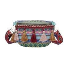Product Details: Color: Multicolor Tribal Embroidered Bag & Tassel Closure Type: Zipper, Fanny pack, Cross body, 100% Polyester.